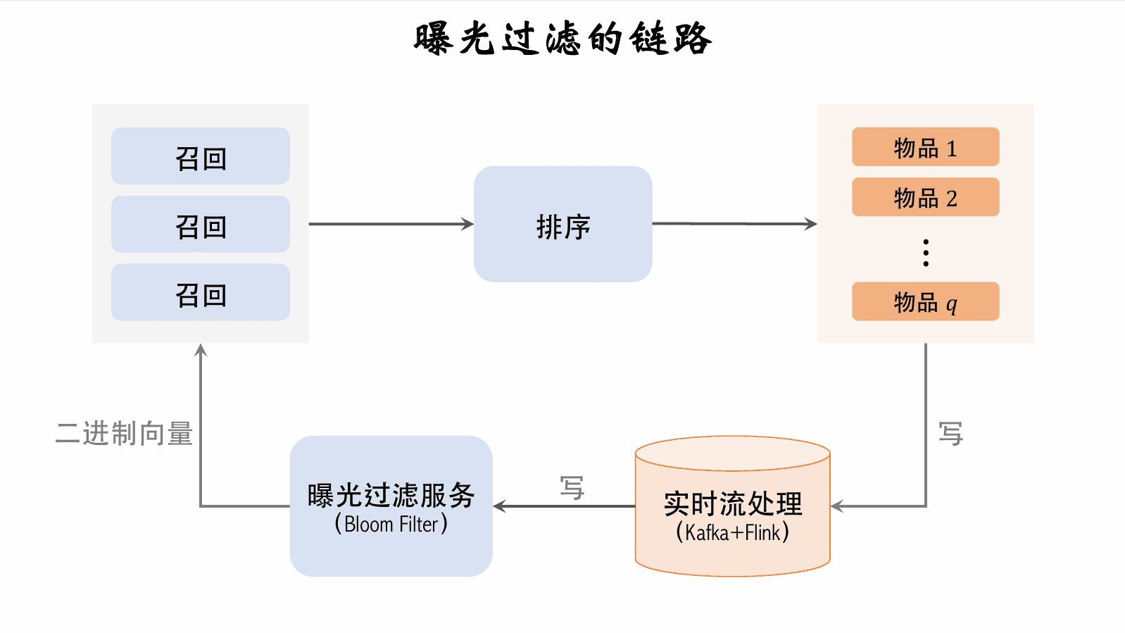 • 对于每个召回的物品,判断它是否已经给该用户曝光过,排除掉曾经曝光过的物品。