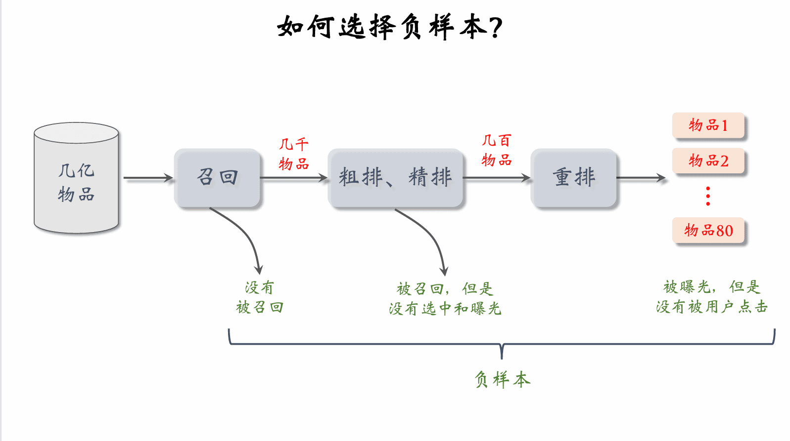 • 返回分数最高的 100 个物品,作为召回结果。